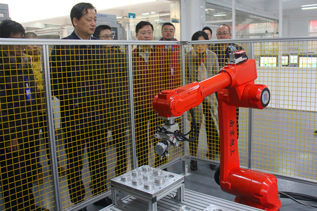 随后潘局长一行先后参观了我院海尔智能家居实训基地、工业机器人实训基地、无人机工作室、蓝岛创客空间、数字化工厂、3D打印(增材制造)实训室。