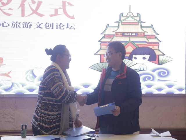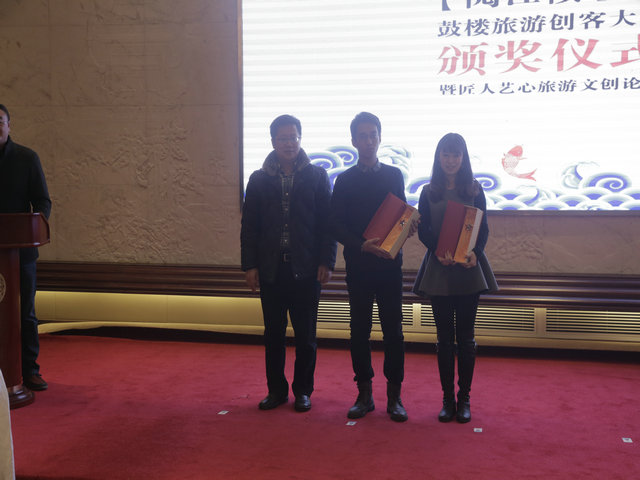 颁奖仪式上,鼓楼区委常委、副区长梁春燕为一等奖获奖选手颁发了荣誉奖牌;星空网页版登录入口院长周庆礼作为本次比赛评委代表为二等奖获奖选手颁发了荣誉奖牌;鼓楼区旅游局局长李民等领导为三等奖获奖选手颁发了荣誉奖牌;最后,南京市旅游委副主任黄琴为优秀组织奖的获奖单位蓝岛创客空间,南艺E-FabLab以及金陵科技学院颁发了荣誉奖牌。