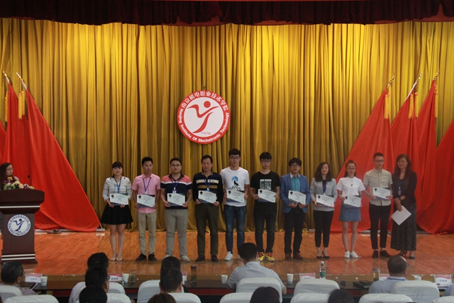 本次大赛,经过激励角逐和层层选拔,共评选出33件优秀作品,其中一等奖5件、二等奖11件、三等奖14 件、单项奖3件。学院领导分别为获得本届大赛的单项奖、三等奖、二等奖、一等奖选手和获得最佳组织奖的电子工程系、机械工程系颁发了证书和奖牌牌匾。