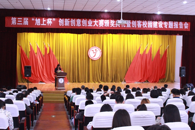 5月16日下午,学院第三届“旭上杯”创新创意创业大赛颁奖典礼暨创客校园建设专题报告会在学院报告厅隆重举行。学院党委书记、院长周庆礼,党委副书记、常务副院长顾益明,纪委书记、副院长陈赵,副院长、继续教育学院院长郭朝辉,副院长刁爱军,副院长赵学洪,工会主席、办公室主任孔德丽及学院全体教职工和部分学生代表出席了本次会议,会议由科研及校企合作处处长李木香主持。