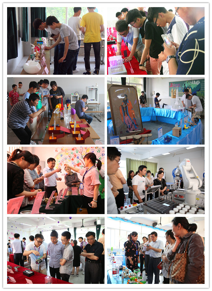 此外,活动现场设置了“创客作品展示”区域,集中展示了近两千件校内外创客作品,作品既有星空网页版登录入口师生创新创意作品,又有来自企业的Brookstorn、智能硬件等新奇特产品,同时还吸引了江宁金箔、烙画、方山裱画、剪纸等江宁非遗项目作品参展,另外,现场还有大学生创业项目产品的展销活动。现场也开设了3D打印、激光切割、激光内雕、热转印、无人机、VR、arduino、乐高机器人、智能家居、系统集成、软件设计、艺术设计、陶艺等15个创客工坊体验,由创客导师现场操作演示,指导校内外创客体验新科技。而以表演赛形式呈现的“2对2足球机器人”竞赛、“马球机器人”等新式运动,给校内外创客们带来充满活力与智慧的体验。