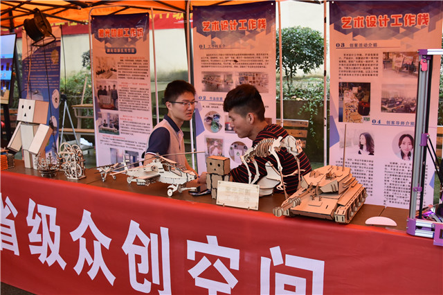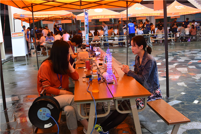 在今年的迎新工作中,各系部将迎新与专业相结合,各自展示了最具特色的创客作品。作为倾力打造的全国首家创客校园,本次迎新工作中也处处可见创客的身影。学院的蓝岛创客空间在各系部的报到点都设置了展示平台,精彩纷呈的创客作品吸引了无数新生和家长的眼光。