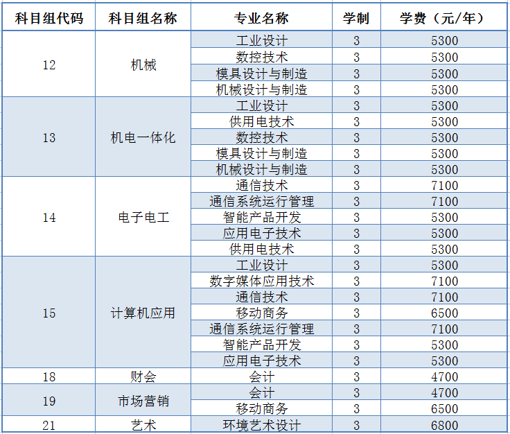 注:可点击感兴趣的“专业名称”,获取专业介绍信息。