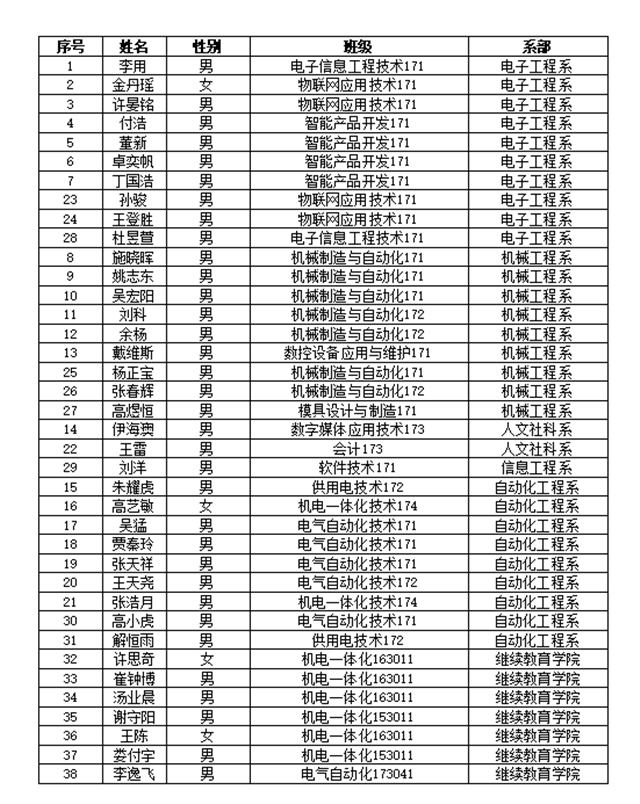 南京机电技术职业学院第二期“双创先锋班”学员名单