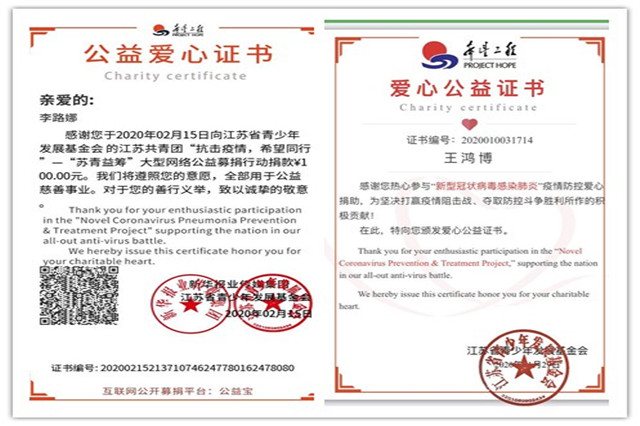机械系李璐娜老师带着儿子一起参与了此次抗击疫情的爱心捐款。这次捐款李老师觉得一定要让儿子参与其中,从告诉他捐款的原因,给谁捐,捐款可能用于的渠道到实际操作线上捐款流程,让儿子切身明白“一方有难、八方支援,守望相助、共克时艰”的意义。在李老师看来儿子虽然只是小学生但他觉得在这种特别的时候更要培养孩子的家国情怀和助人之心。让孩子感觉到众志成城不是口号,是每个中国人切身的行动。