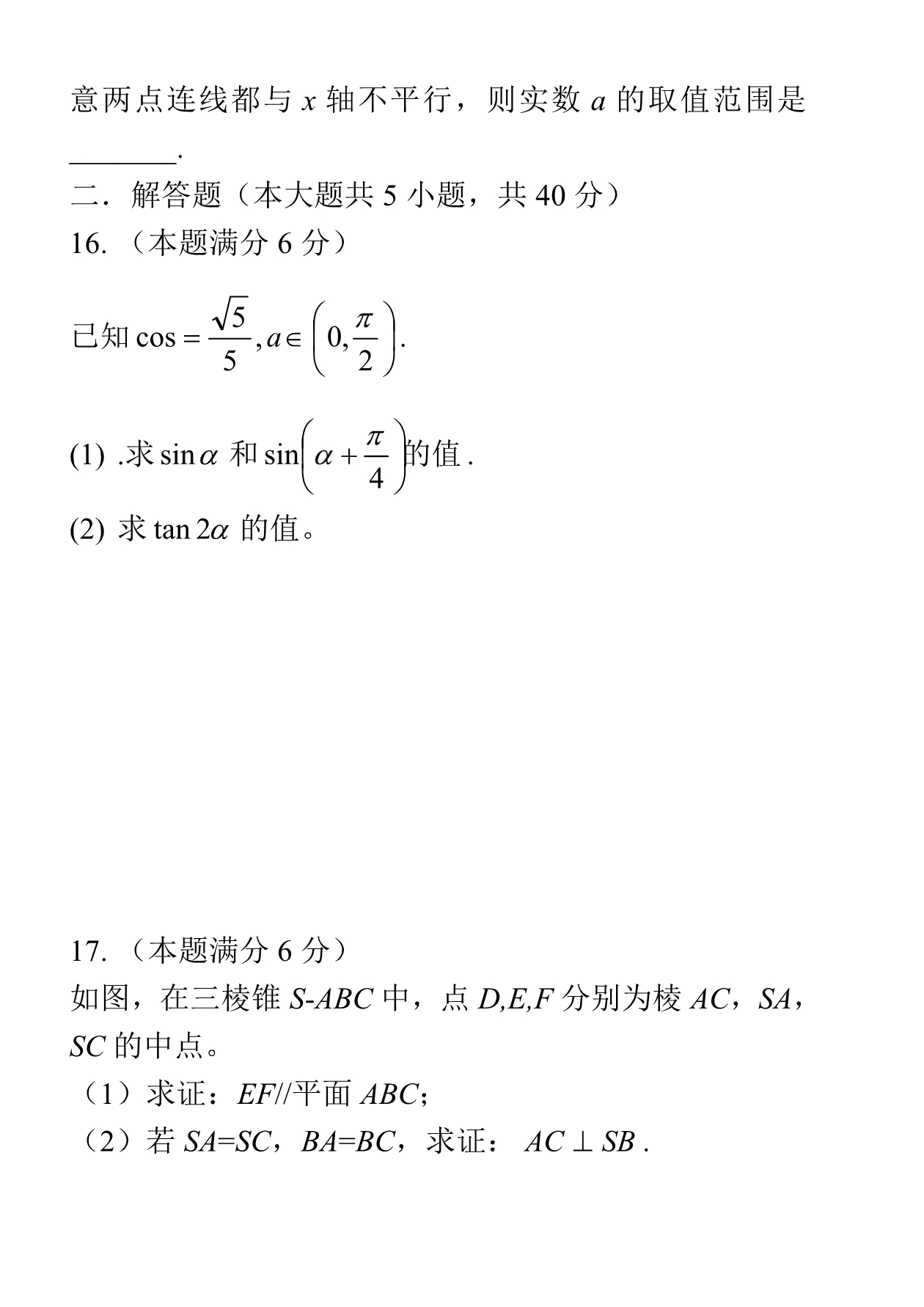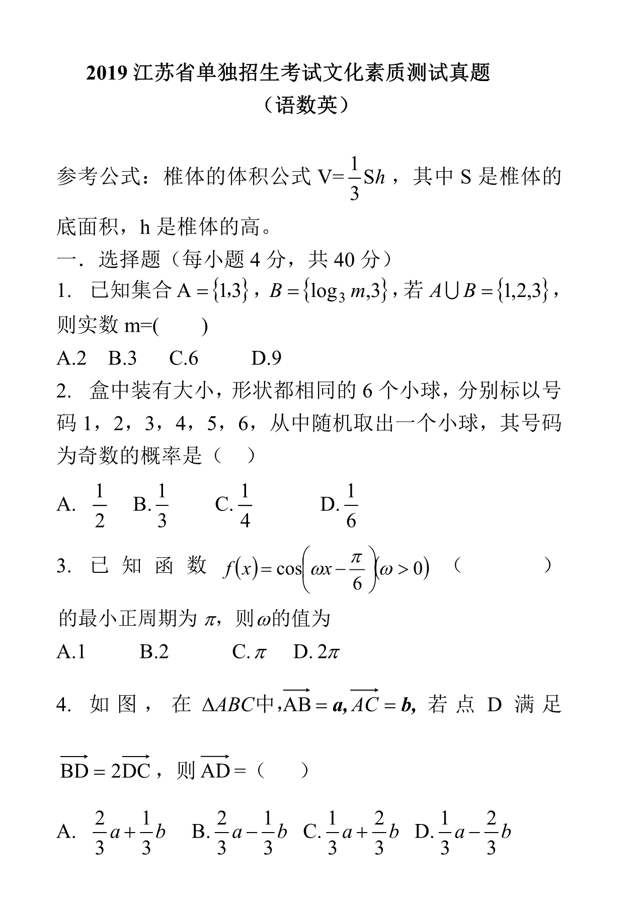 2019年江苏省提前招生真题卷(数学)