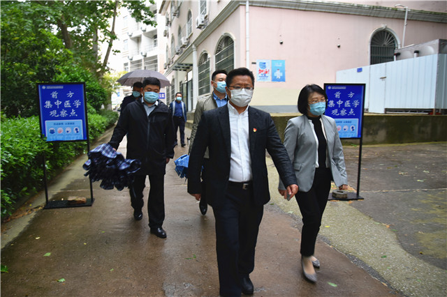 4月27日下午,南京新工投资集团有限公司总经济师洪薇一行来到学院指导疫情防控及校园安全工作。学院党委书记、院长周庆礼、副院长孔德丽及学工、后勤、办公室等相关部门负责人陪同。