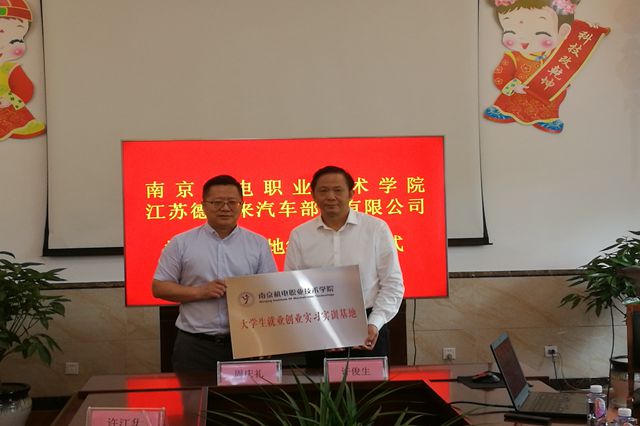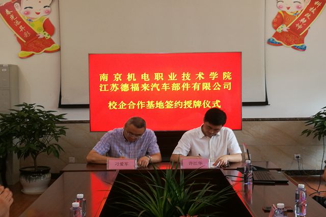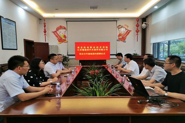 随后,学院一行5人在泰兴市高新技术开发区管委会副主任邱明波的带领下分别前往苏德福来汽车部件有限公司、江苏佳佩环保机械设备有限公司进行校企合作专题对接活动。学院领导与企业领导就人才培养、项目合作等校企合作事宜进行了深入的交流,初步达成合作意向。学院分别与两家公司签订《就业创业实习实践基地建设协议》,并向两家公司授予“星空网页版登录入口大学生就业创业实习实训基地”铜牌。