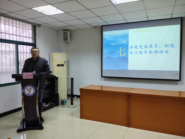 仪式最后,刁爱军副院长进行了勉励讲话 。刁院长引用著名文学家鲁迅先生的话“与其糊涂与其找糊涂导师,倒不如自己走,可以省却寻觅的功夫,横竖他也什么都不知道。”作为警语对督导工作提出了要求,要做到督教改、导业务,督学术、导技术,督课程、导技能。而对于新教师,刁院长则是以北宋大文豪欧阳修的“立身以立学为先,立学以读书为本”作为寄语,给新教师提出要与导师一起共建课程资源,共做科研项目,共享教改成果的三项要求。