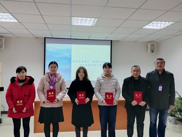 仪式由人事处处长夏玲玲主持,首先由李清处长宣读了《2020年院级督导聘任决定》和《增补院级督导(教学指导)组成员的决定》,紧接着在庄严的乐声中刁爱军副院长为受聘督导颁发聘书,自导师们从刁院长手中接过聘书起,他们肩上便担起了一份沉甸甸的责任。