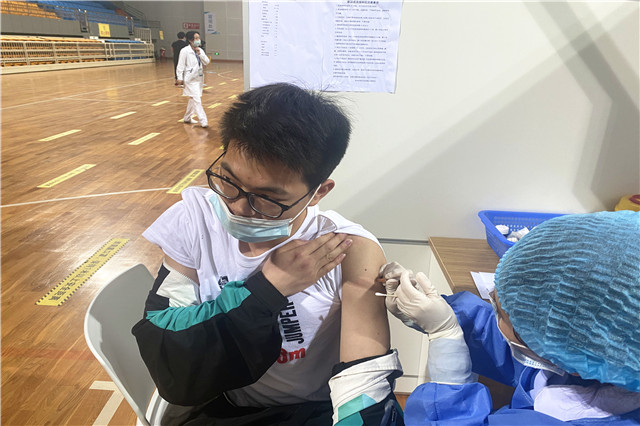 在高淳区全民体育中心接种点各区域划分合理。包括登记打单区、疫苗接种区、留观区等。师生们分时段、分批次、戴口罩在现场人员的指引下按照一米线距离有序排队入场。在核对身份证、进行健康状况咨询、签署知情同意书和做好查验工作后医务人员开始给师生接种新冠疫苗。