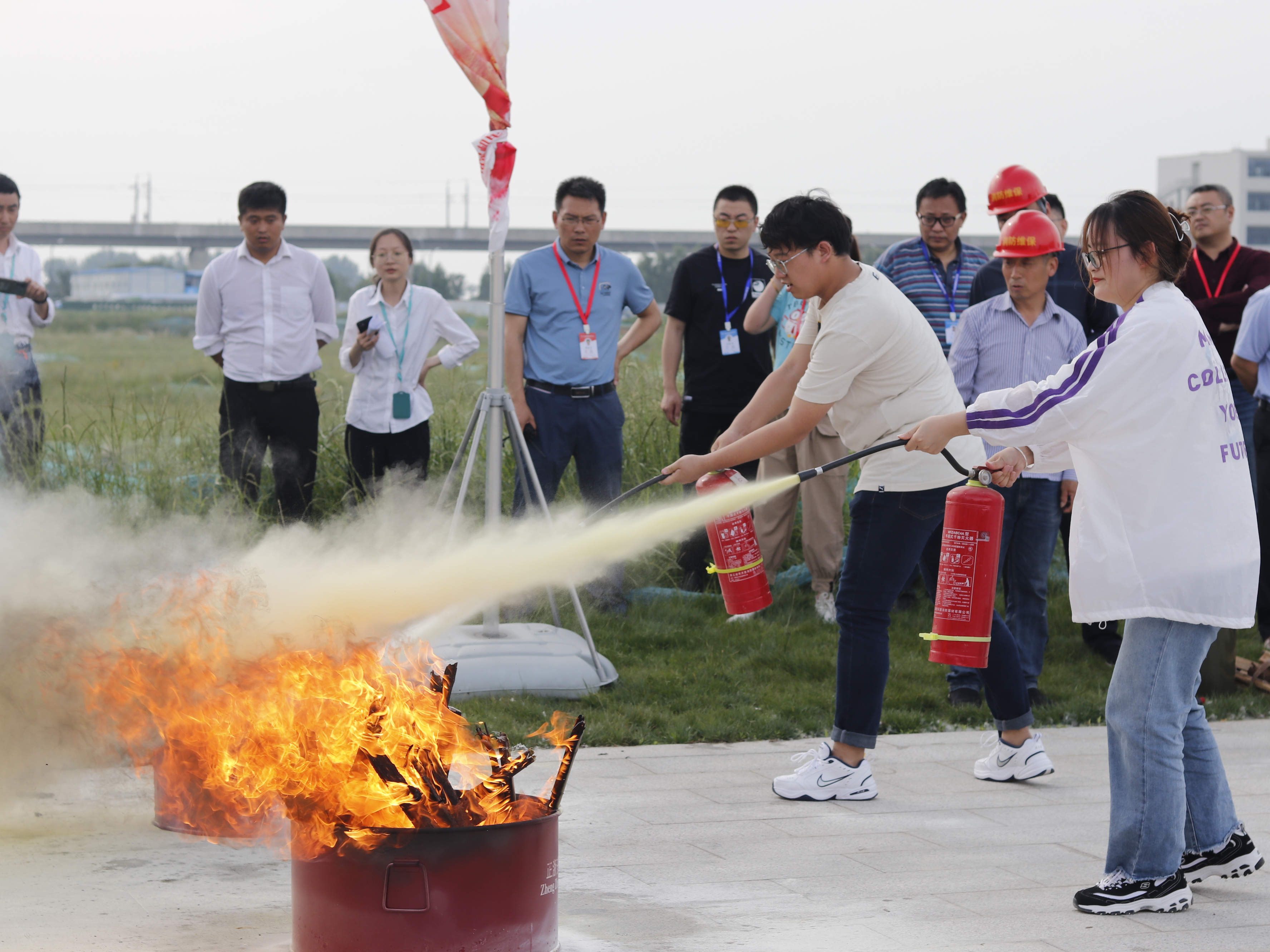下午15:30,演练活动正式开始。随着急促的警报声响起,学生们在宿管老师的引导下,从寝室迅速有序地撤离到操场指定的疏散集合地点。各班清点人数,层层上报,参加此次演练的800余名师生用时5分23秒全部安全疏散完毕。现场副总指挥、校党委委员、副院长赵学洪就如何报火警、火灾的预防、火场自救及逃生方法等消防安全基本知识对现场师生进行详细讲解。孙队长给现场师生详细讲解了灭火器的使用方法,并进行了演示,同时邀请了部分老师和学生上台体验使用灭火器灭火的过程。总指挥、校党委书记、院长周庆礼对此次消防应急疏散演练活动进行了总结,他强调一旦身边发生突发事件,要沉着应对,做好及时报告和安全逃生工作,有效掌握在危险环境中迅速逃生、自救、互救的基本方法,切实提高抵御和应对紧急突发事件的能力。