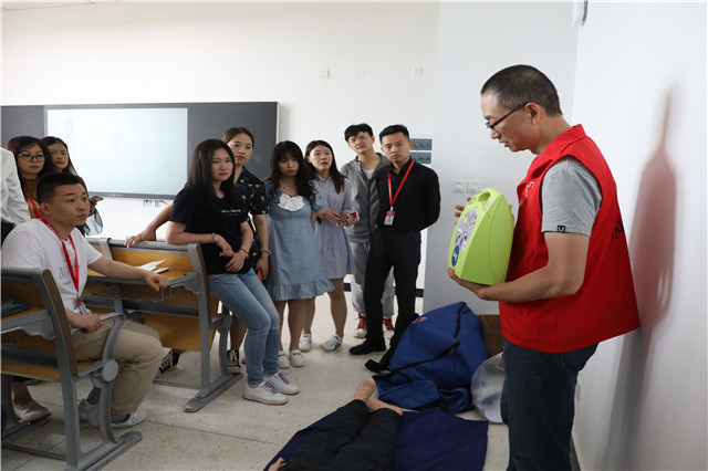 为进一步普及应急救护常识,提高我校CPR+AED救护员培训数量和质量,切实加强我校教职员工自救互救意识与能力,5月27日-28日,我校特别邀请了南京市红十字会的三位老师在思学楼308开展“救”在身边CPR+AED应急救护师资培训班。我校30名教职工参与此次培训。