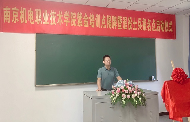 9月24日下午,学校在南京师范大学板仓校区举行紫金培训点揭牌暨退役士兵报名启动仪式。学校党委委员、副院长孔德丽,各系部书记,培训处全体成员以及企业代表共同出席仪式;仪式由培训处副处长周云龙主持。