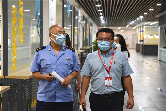 学校疫情防控工作各专项负责人带领专项组分别前往办公区、教学楼、物资储备室、食堂、宿舍等重点区域实地查看,专项组对学校各项准备工作进行了现场评估验收,并给予了充分的肯定。