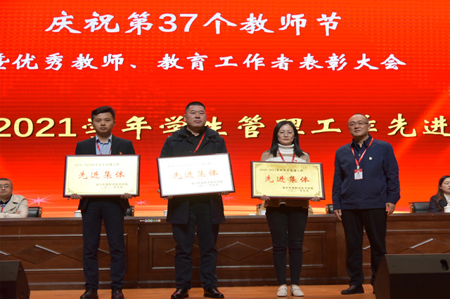 10月21日下午,学校在报告厅召开庆祝第三十七个教师节暨优秀教师、教育工作者表彰大会。全校教职工参加会议,大会由党委副书记、纪委书记、副院长陈赵主持。
