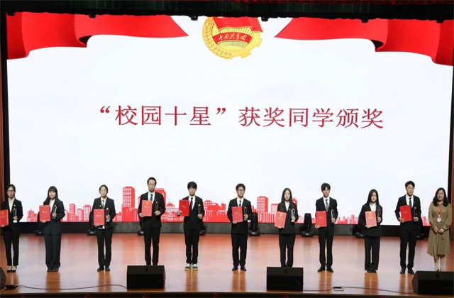 为表彰先进、树立典型,在建团百年之际充分发挥先进典型示范引领作用,进一步组织动员全校团组织和广大团员、团干部在实践中展现青春担当,以实际行动迎接党的二十大胜利召开,我校团委于2022年5月4日在星梦馆多功能厅召开“喜迎二十大、永远跟党走、建功新征程”五四表彰大会。学院领导、学工处领导、各职能处室领导、各系党支部书记、团总支书记、辅导员代表、获奖集体和学生代表出席了本次会议。会议由团委老师金慧敏主持。