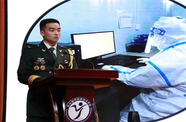 自疫情发生以来,全校广大志愿者冲锋在前、不辞劳苦、无畏风雨,用实际行动践行了初心和使命,用真诚奉献诠释了青年的责任与担当,构筑起战疫的坚固防线,用实际行动弘扬了奉献、有爱、互助、进步的志愿精神,为抗击疫情作出了积极贡献。“疫情防控优秀志愿者”代表徐政豪同学给在场的同学们分享了“战疫青年先锋队”的志愿服务经历。