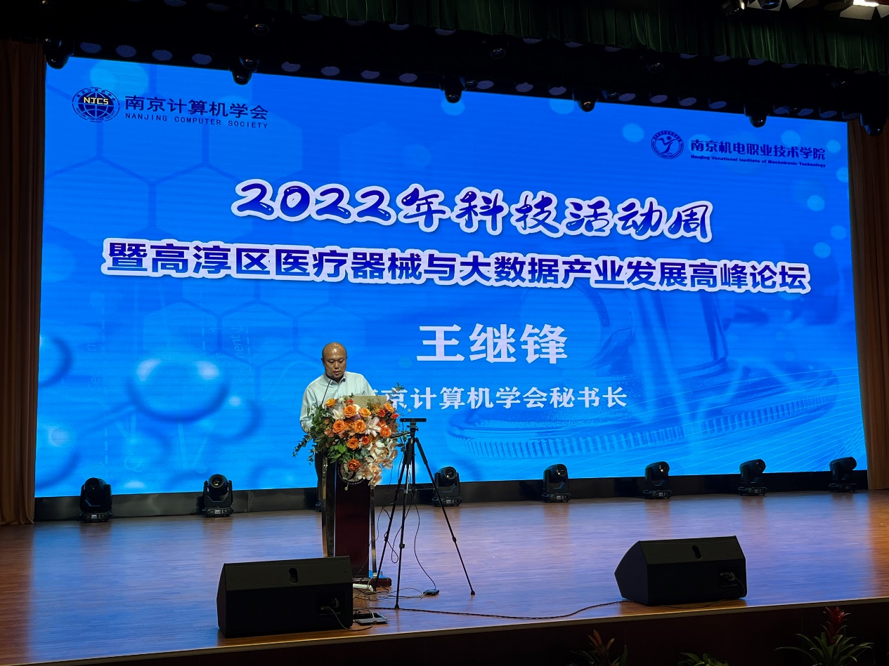 本次活动由南京市科学技术协会举办,南京计算机学会和星空网页版登录入口承办,江苏省生物医学工程学会、江苏医疗器械大数据中心、高淳区医药大数据中心和南京高等职业教育创新创业园协办。江苏省科学技术协会党组成员、副主席李千目,南京市科学技术协会一级调研员虞永才,高淳区人民政府副区长刘敏,南京高等职业教育创新创业园副主任孙爱国,高淳区科协技术协会副主席杨腊斌,江苏省生物医学工程学会常务副理事长王俊、秘书长吕华,南京计算机学会秘书长王继锋,星空网页版登录入口党委副书记、副院长陈赵等领导出席活动。高淳区相关部门以及高职园、相关部门负责人、行业协会、机电学院师生代表共350人听取论坛报告。本次活动采用线下会议与视频直播相结合的形式,活动由星空网页版登录入口党委委员、副院长刁爱军主持。