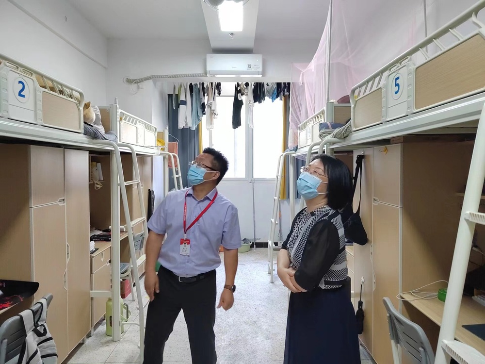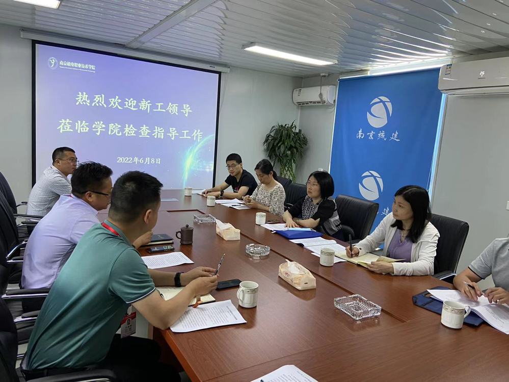 2022年6月8日上午,新工投资集团党委委员、总经济师洪薇一行对我校校园安全工作进行检查指导,校党委书记、院长周庆礼、党委委员、副院长孔德丽与各部门主要负责人陪同。