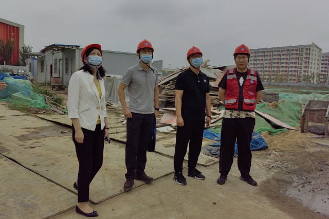 在施工现场,孔德丽副院长介绍了学校二期工程建设进展及现场安全文明施工管理情况。