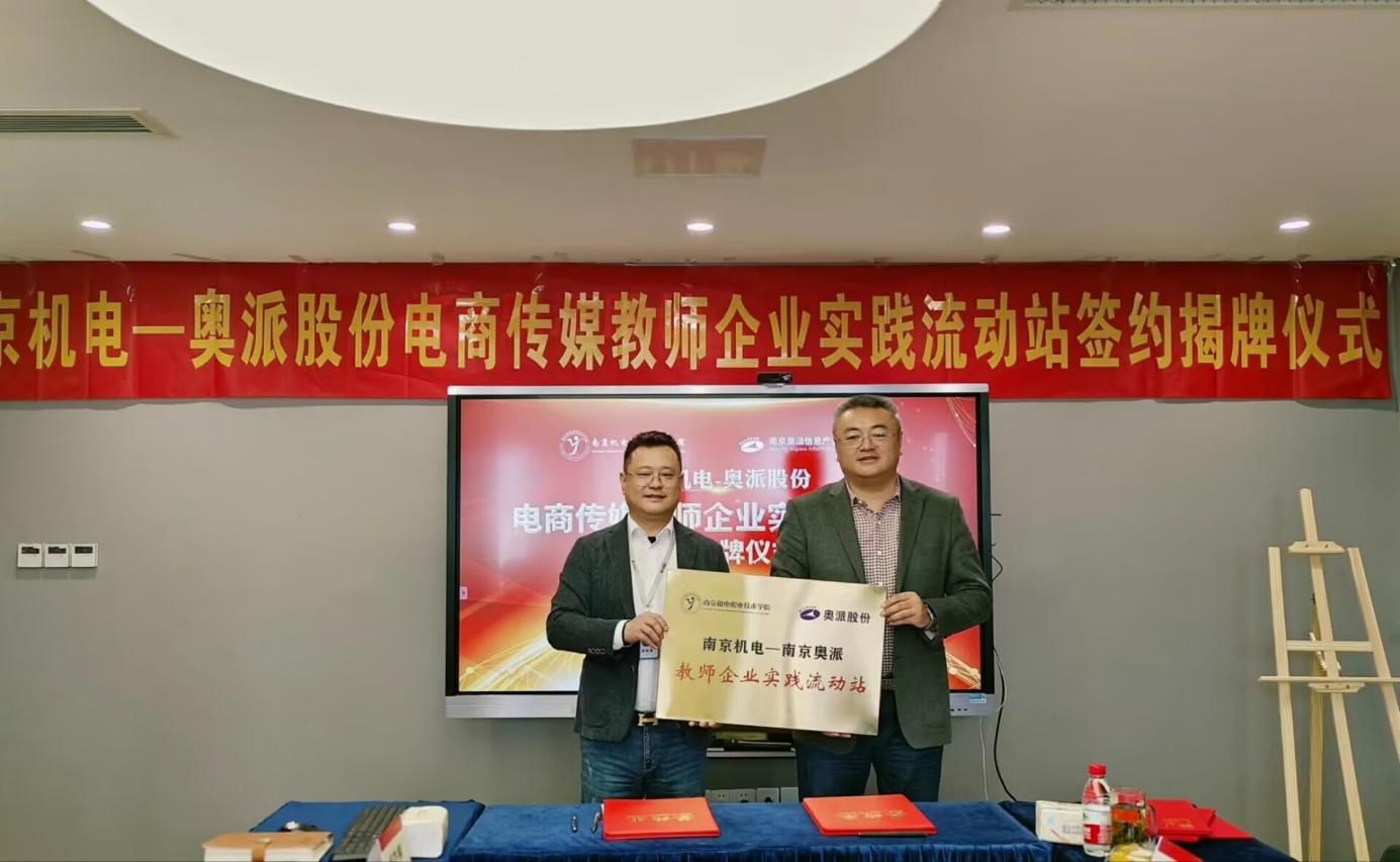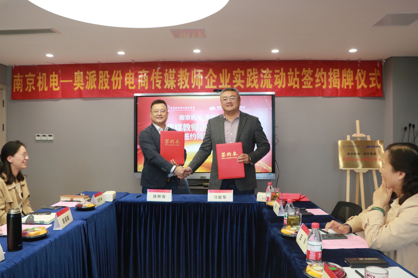 我校与南京奥派信息产业股份公司举行“南京机电-奥派股份电商传媒教师企业实践流动站”签约揭牌仪式