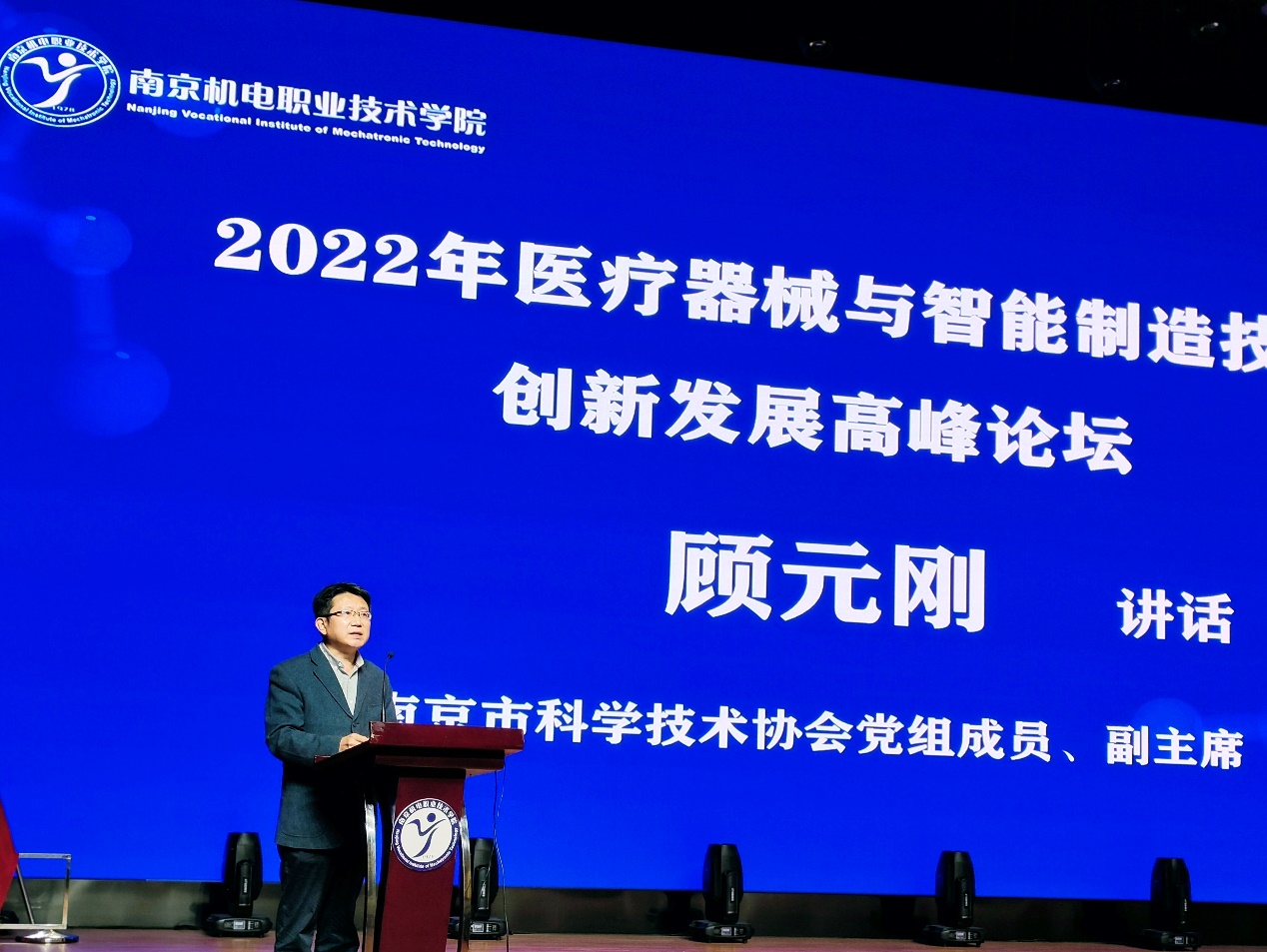 顾元刚介绍了第十四届南京青年学术年会办会宗旨,以“展现青年使命担当,投身科技自立自强”为主题,围绕我市引领性国家创新型城市的建设目标,通过举办一系列内容丰富、形式多样的学术交流活动,大力营造创新发展的学术氛围和社会氛围,不断激发青年科技工作者的创新热情和创新自信,为南京建设社会主义现代化典范城市贡献青春智慧和青春力量。顾主席表示,本次论坛是南京机电学院等单位主动作为,积极投身医疗器械科技进步,科技创新的积极举措,必将助力创新思维提升、工程能力培养,为高淳区乃至全市医疗器械和智能制造的技术创新起到积极的推动作用。