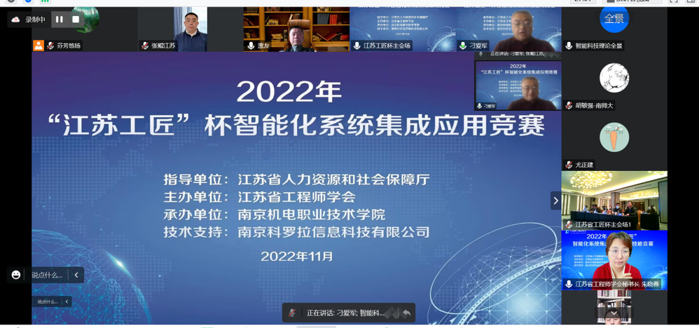 由于疫情原因,本次竞赛以线上形式开展,江苏省科协副主席胡敏强、江苏省人社厅职业能力建设处处长陈彦德、江苏省人社厅职业能力建设处主任张鲲,南京机电职业技术学院党委书记、院长周庆礼及大赛组委会成员、裁判代表出席开幕式,来自江苏各市职业院校及制造行业相关企业共89支参赛队,188名选手参与线上比赛。开幕式由学校党委委员、副院长刁爱军主持。