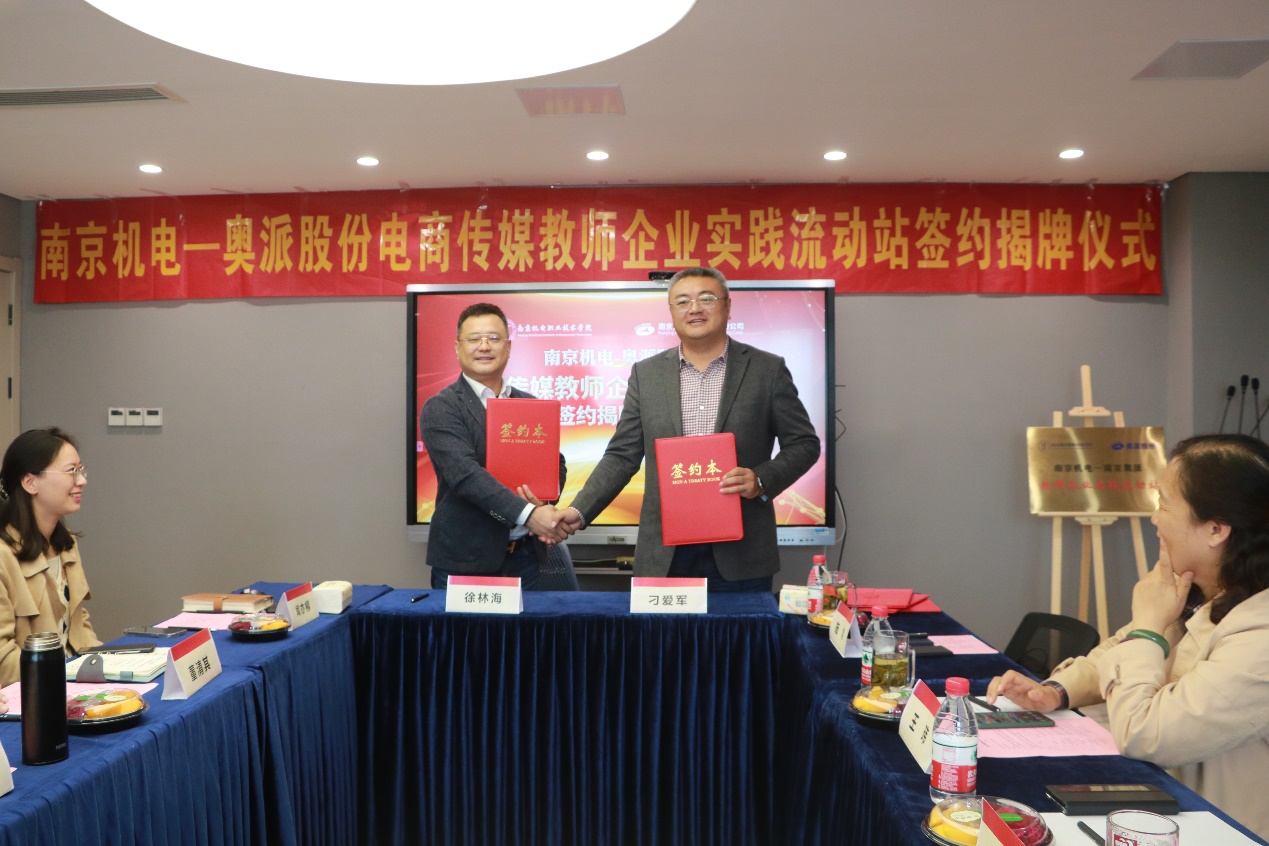 “南京机电-奥派股份电商传媒教师企业实践流动站”签约授牌仪式