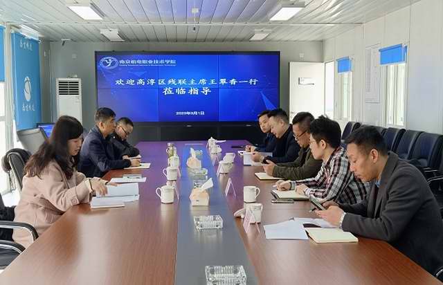3月1日上午,高淳区残联主席王翠香一行在南京高职园孙爱国副主任的陪同下莅临学校调研交流。学校党委书记、院长周庆礼,党委委员、副院长孔德丽出席会议,培训处、自动化工程系等部门负责人参加会议。