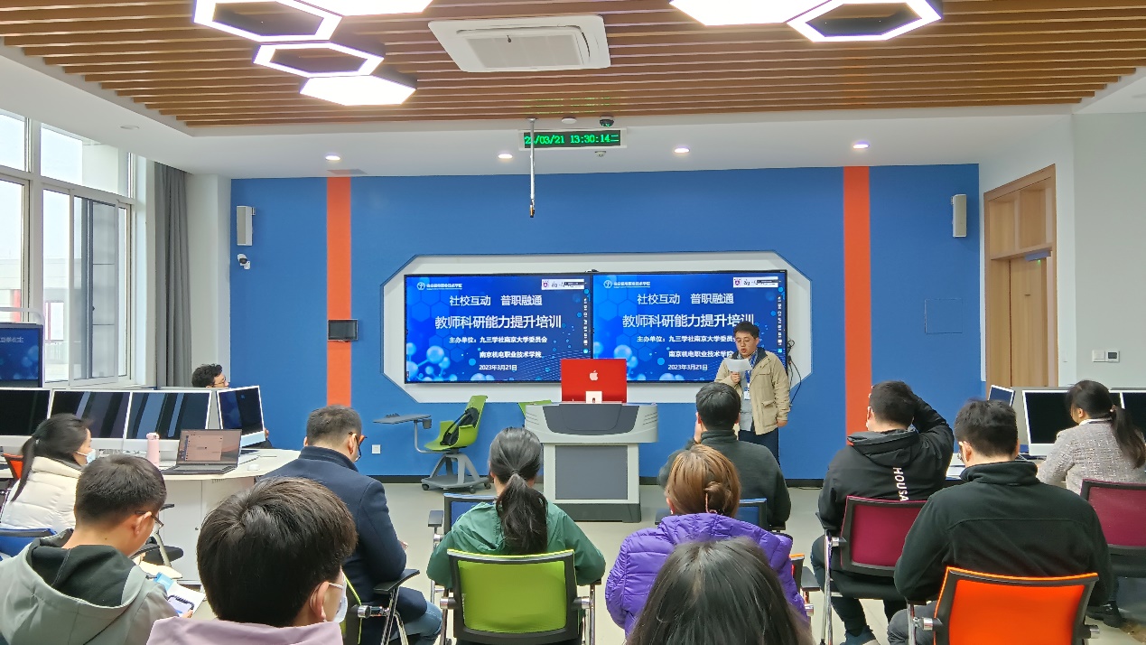 为提升高职院校教师科学研究能力,提高科研项目申报书撰写质量, 3月21日下午,由九三学社南京大学委员会和星空网页版登录入口共同主办的“社校互动 普职融通”教师科研能力培训活动在星空网页版登录入口博学楼举行。活动采用线上+线下相结合的方式,九三学社南京大学委员会副主委、南京大学天文与空间科学学院教授陈鹏飞线上交流,南京大学天文与空间科学学院副教授徐晓杰作了主题讲座和项目辅导。拟申报2023年度江苏省高等学校基础科学(自然科学)研究面上项目和其他相关纵向科研项目的教师参加了本次培训。