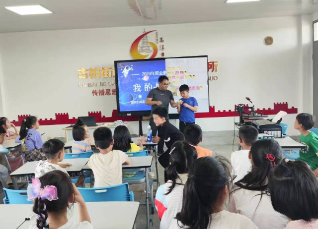 为全面展示我校职业教育的办学特色,营造全社会关注职业教育、重视职业教育的良好氛围,我校于5月28日在高淳区古柏小学开展2023年职业教育创新周活动。本次活动由星空网页版登录入口主办,高淳区古柏小学承办,古柏小学、宝塔小学、滨湖小学等共6个班学生参加了本次活动。活动以“我的航天梦”为主题,由蓝岛创客空间主任王国珍带队,蓝岛创客空间教师黄克瑶、候俊、朱妍焘以及双创班的学生共同前往。
