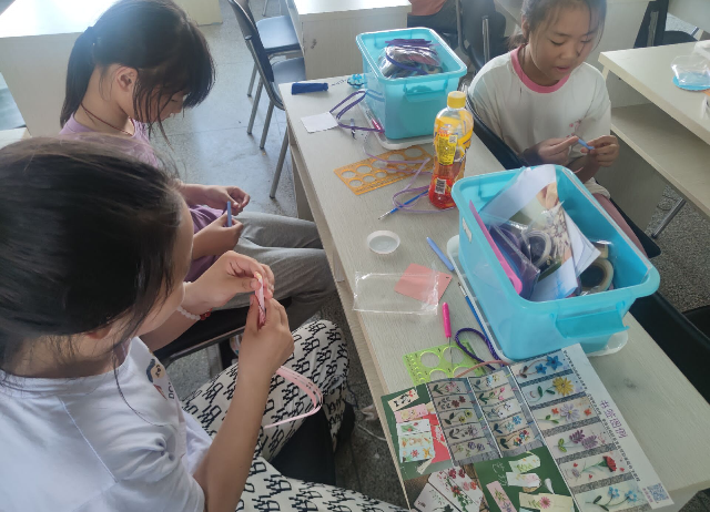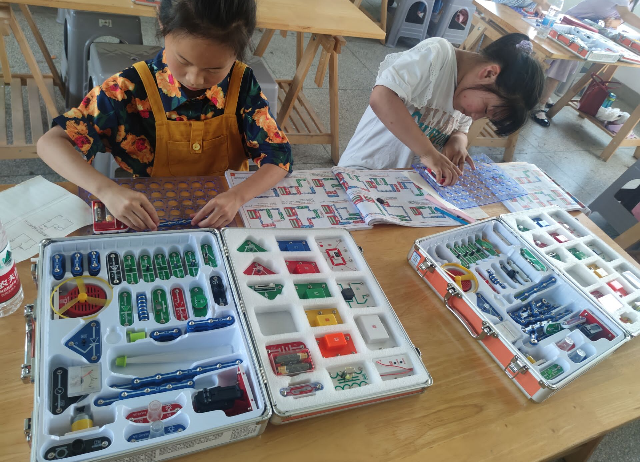 活动现场还开展了电子积木、创意剪纸等活动。学生们玩得不亦乐乎,整个活动气氛轻松愉快,不时传出欢声笑语,学生们在完成制作后拿着自己的作品满载而归。