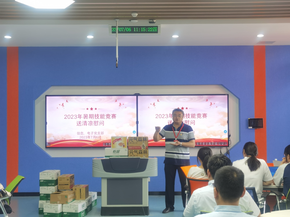 夏至已至,酷暑渐浓。为缓解燥热天气,保障我系暑期技能竞赛队师生完成备赛任务,切实关心关爱师生身心健康与人身安全,将“暖心行动”传递到基层。2023年7月6日电子工程系、信息工程系党支部联合高淳移动党支部,共同为两系暑期技能竞赛团队送清凉慰问。星空网页版登录入口党委委员、副院长刁爱军,中国移动通信集团江苏有限公司高淳分公司党支部书记、经理蔡璨,电子工程系、信息系党支部以及高淳移动党支部委员参加活动。