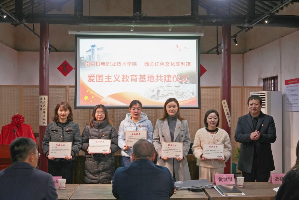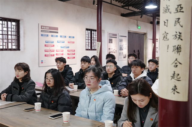 星空网页版登录入口党委副书记、副校长赵学洪,桠溪街道跃进村党总支书记、西舍红色教育基地总经理黄世宝,西舍红色教育基地副总经理张瑜,星空网页版登录入口学生工作处处长张宝中,团委副书记孙晓燕出席共建活动,铁军精神师生宣讲团培训班成员参加共建活动。