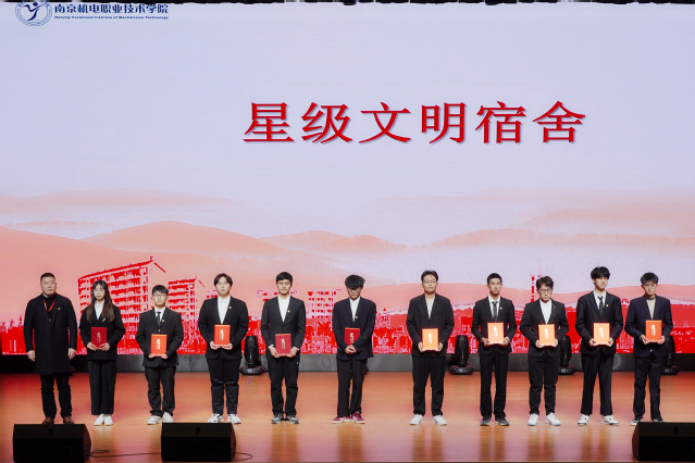 机械工程系党支部副书记李杰为星级文明宿舍获奖代表颁发证书