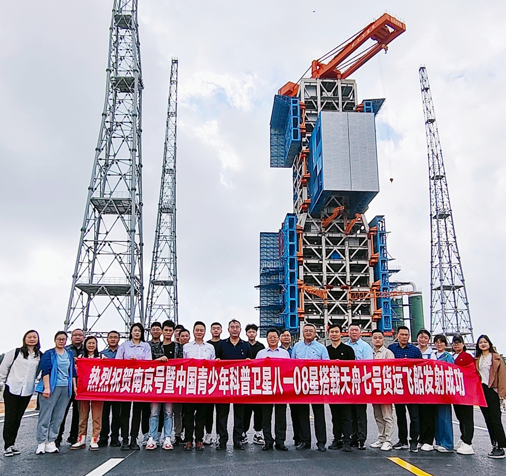 文昌航天发射场灯火通明,前往见证这历史性一刻的老师们纷纷沉浸在天舟七号成功发射的巨大喜悦中。卫星团队杨阳老师表示,“南京号”八一08星伴随天舟七号货运飞船发射成功,作为全程参与卫星研制的我感到无比的激动和自豪。南京号的成功发射,标志着中国高职院校首颗科普卫星遨游太空。学校将以此为契机,进一步推进科普卫星工作,点亮青少年的梦想星空,围绕卫星上的声音载荷开展孩子声音上太空活动,围绕光通讯载荷开展“闪烁的密码”竞猜活动,围绕相机载荷开展“我们的学校、我们的乡村、我们的城市”拍摄分享等一系列科普活动。卫星的成功发射,也让我更加坚定职业教育要弘扬以航天精神为代表的科技强国理念和爱国主义情怀,培养学生对航天探索的兴趣,为实现航天强国贡献自己的青春力量。