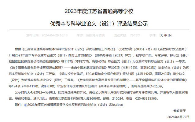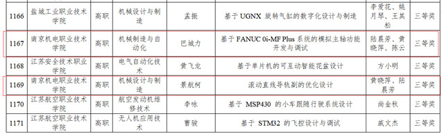 近日,江苏省教育厅公布了2023年度江苏省普通高等学校优秀本专科毕业论文(设计)评定结果,由我校机械工程系机自专业巴城力同学撰写,陆晨芳、黄晓萍、陈云老师指导的论文《基于FANUC 0i-MF Plus系统的模拟主轴功能开发与调试》和由机制专业景航柯同学撰写,黄晓萍、陆晨芳老师指导的论文《滚动直线导轨副的优化设计》,荣获2023年度江苏省普通高校本专科优秀毕业论文三等奖。