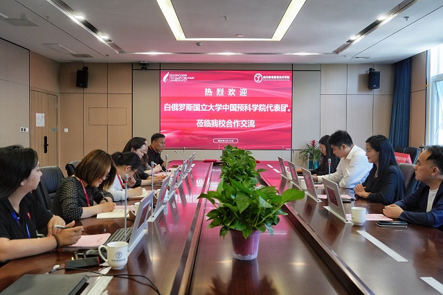 白俄罗斯国立大学中国预科学院中方院长张践对我校的热情接待表示感谢,对我校的发展进步以及近年来所取得的成绩表示高度赞赏,详细介绍了白俄罗斯国立大学和白俄罗斯国立大学中国预科学院的办学历史、发展状况并就目前学校在国际交流与合作方面的办学情况做了详细的介绍。希望双方今后的合作可以不断深化,在学术交流、师生交流等方面开展长期的合作。
