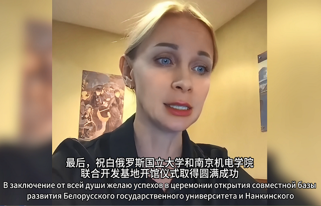 白俄罗斯国立大学中国预科学院外方院长奥尔加·亚历山德罗夫娜发来视频致辞。