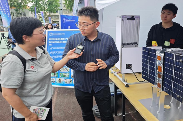 刁爱军副校长热情洋溢的与领导嘉宾介绍了“南京号”暨中国青少年科普卫星(八一08星)的结构功能、研制过程、发射情况以及卫星测控的计划安排。他表示,我们学校的这颗卫星是职普融通、产教融合、科教融汇理念的真实写照,让更多学生可以依托此卫星,在科普、科研领域大放光彩。活动现场,江苏广播电视台、现代快报等众多媒体对星空网页版登录入口的展位进行了采访报道。
