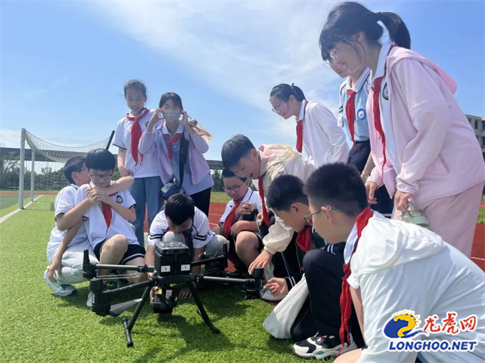 室外无人机场上,同学们兴致勃勃地观摩专业无人机飞手自如地操作着不同型号的无人机,并亲自体验了无人机航拍技术。同学们在亲身体验中感受到了科技的力量,脸上洋溢着满足和兴奋的笑容。