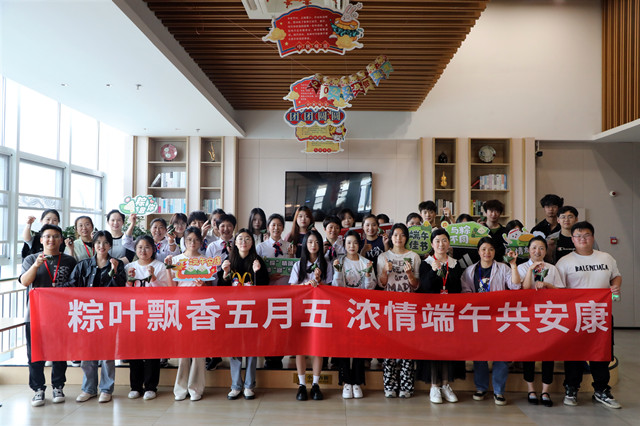 在包粽子体验区,宿管老师从粽叶的折叠、糯米的放置到绳子的捆绑,每一步都进行细致地演示和讲解。师生们围在一起,纷纷动手实践,两片狭长青绿的粽叶,一叠,一卷,小小的“漏斗”放入浸好的糯米和馅料,一折,一包,一扎,一个个棱角分明的粽子就做成了。活动现场弥漫着浓浓的粽香和欢声笑语,师生们在互帮互助中享受着劳动的乐趣。