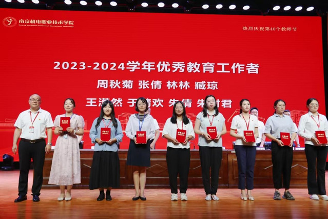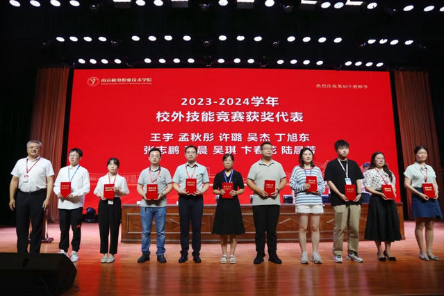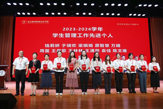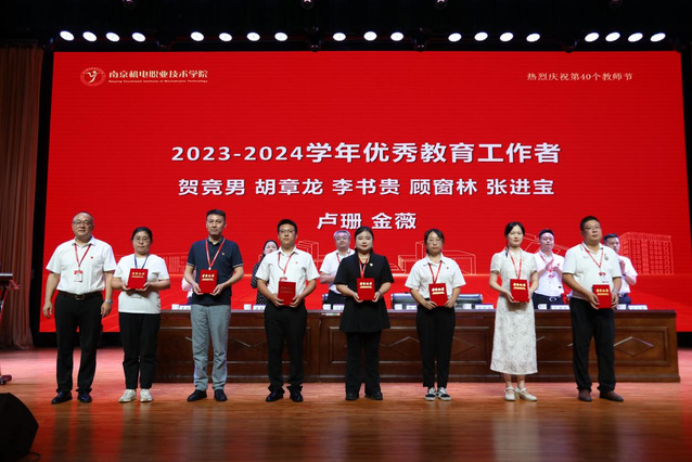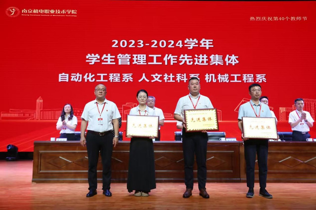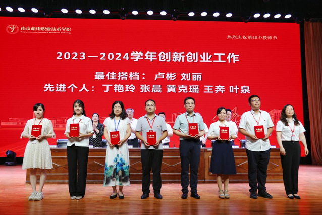 会上对2023-2024学年创新创业工作最佳搭档、先进个人、先进集体、第九届“知链杯”创新创意创业大赛暨第十届中国国际“互联网+”大学生创新创业大赛校内选拔赛优秀组织奖、学校首届青年教师基本功大赛、2023-2024学年“我喜爱的教师”获奖者、2023-2024学年校外综合管理、技能竞赛获奖者、2023-2024学年学生管理工作先进个人、学生管理工作先进集体和2023-2024学年优秀教师、优秀教育工作者、优秀辅导员和2023-2024学年突出贡献奖进行表彰。