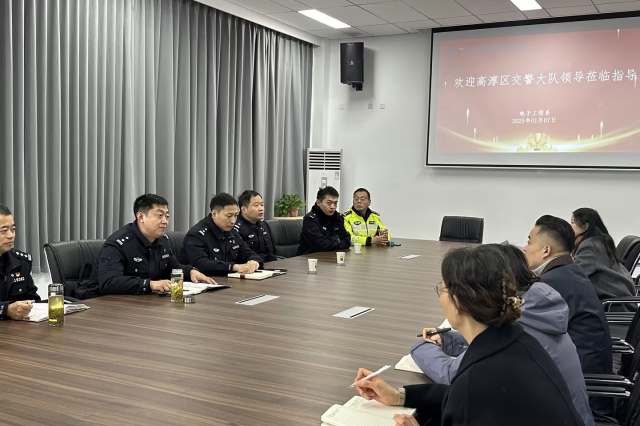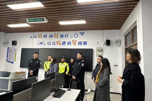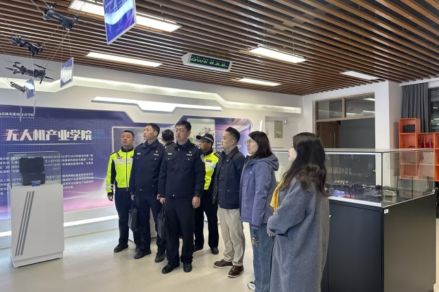 2025年1月7日,高淳区交警大队代表在队长隋中的带领下莅临电子工程系,就无人机产业发展与合作进行深入指导与交流。代表们的来访不仅彰显了地方政府与行业院校之间的紧密联系,也为双方未来的合作奠定了坚实基础。