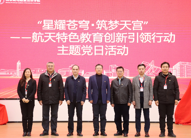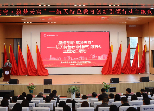 2025年3月6日14:00,星空网页版登录入口在乐学楼101举办了“星耀苍穹・筑梦天宫”航天特色教育主题党日活动,本次活动旨在响应习近平总书记的号召,激发学生的科学兴趣,弘扬航天精神,培养学生的创新精神和实践能力,推动学校专业建设与航天文化的深度融合。中国航天科技集团有限公司党组副书记、董事方向明,中国人才研究会副会长、航天科技教育联盟秘书长、北京航天探索馆馆长周岫彬,航天科技集团党群工作部三级业务经理张广科,北京神舟航天软件技术股份有限公司市场营销部主管张凇铭,学校党委书记、校长周庆礼,党委委员、副校长刁爱军,党委委员、副校长孔德丽,党委委员、纪委书记姜振宇,党委委员夏玲玲、党委委员高水冕以及全体党员教师和学生代表参加了本次活动。