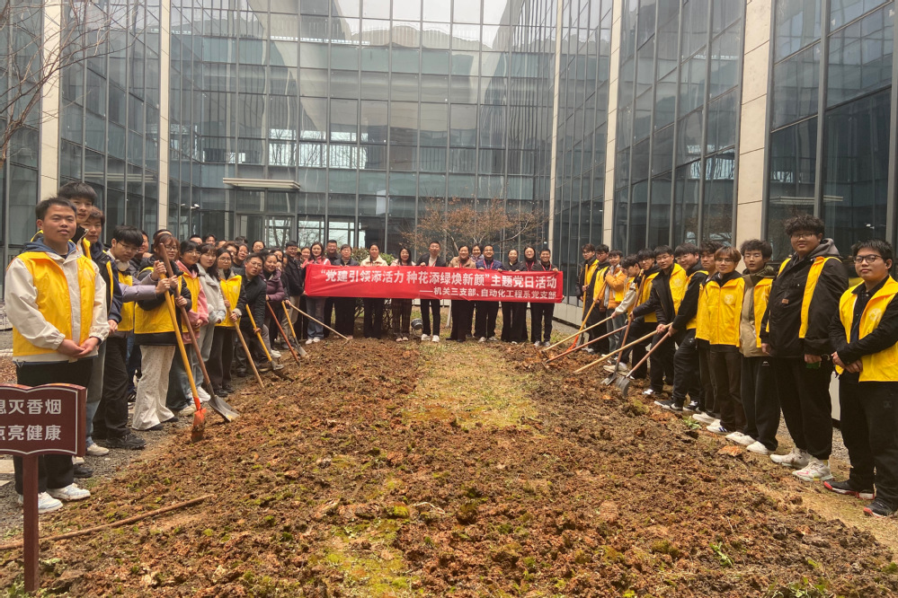 3月13日下午,在自动化工程系和学校机关三支部党员老师的带领下,大学生志愿者在学校育德楼中庭、敏行楼西侧花圃和敏行楼南侧河畔开展了集中种花植绿活动。师生分工协作,密切配合,挥锹挖坑、撒籽掩土,每个步骤都有条不紊。师生干劲十足,只管努力,静待花开。