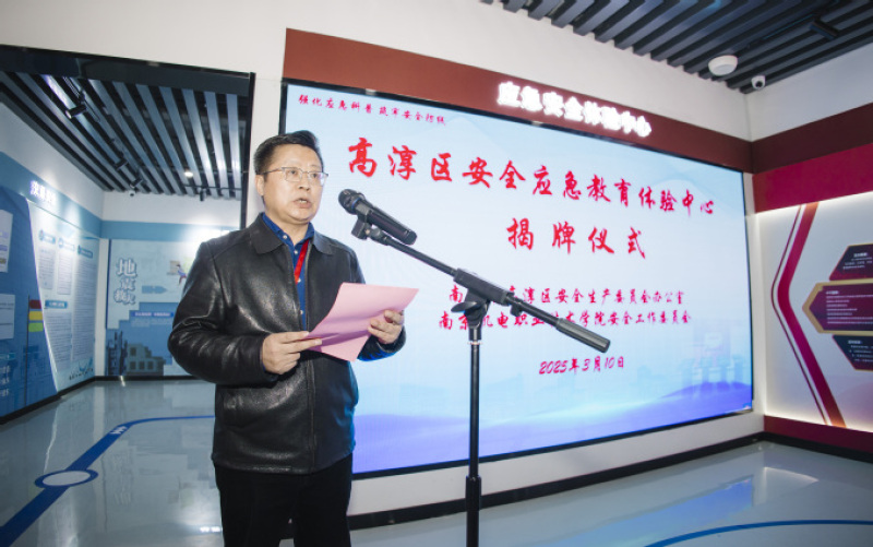 周庆礼在致辞中强调,安全是发展的生命线,应急是治理的试金石。他表示,学校安全应急教育体验中心正式由校级延展为区级,这既是对学校安全教育工作的高度认可,更是一份沉甸甸的责任。学校将以构建全链条覆盖的安全教育体系、实施全要素赋能的教育创新工程和建立全周期联动的应急响应机制三个战略定位推动安全效能提升。学校将以今天的揭牌仪式为新的起点,与高淳区携手共进、开拓创新,共同绘就人人懂避险、户户会应急、处处有保障的平安长卷。通过校地双方的深度合作,将高淳区应急安全教育体验中心打造成长三角地区具有示范效应的安全教育标杆,为建设更高水平的平安高淳、平安南京贡献智慧和力量。
