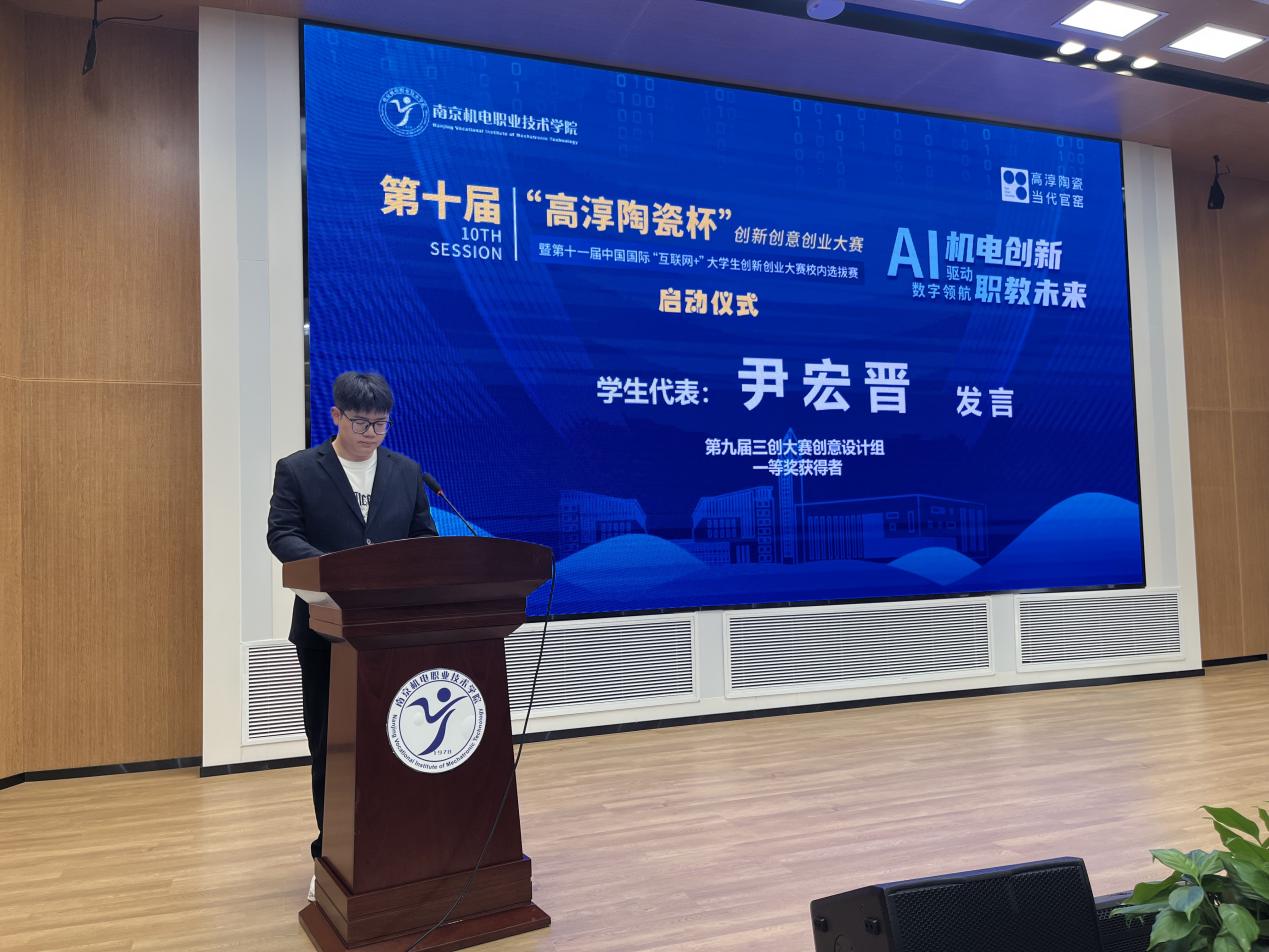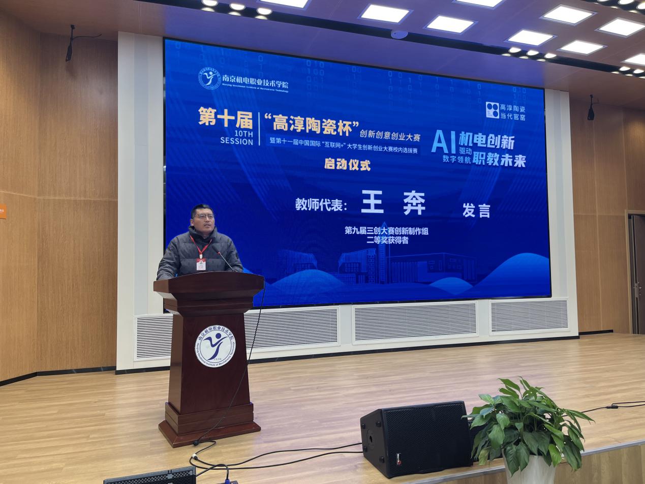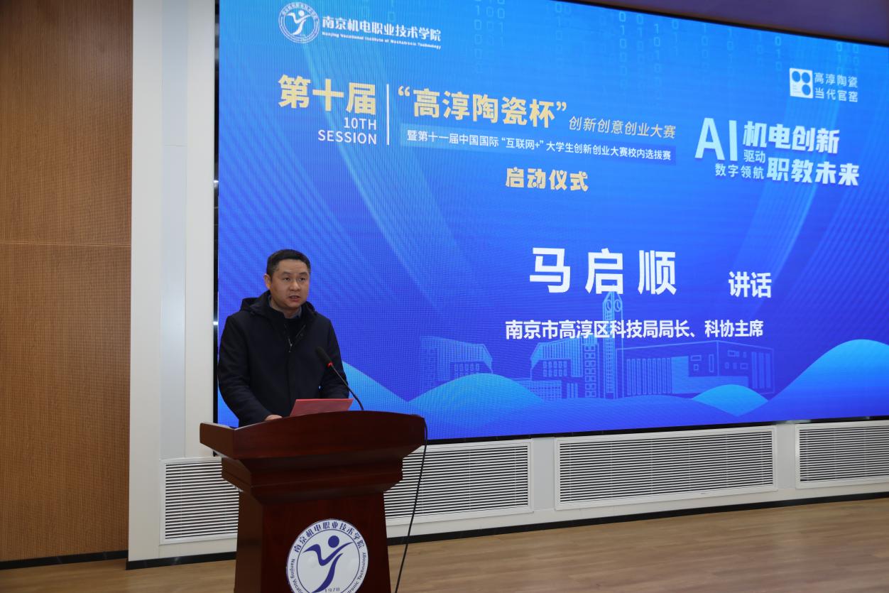 2025年3月18日,“AI驱动机电创新,数字领航职教未来”星空网页版登录入口第十届“高淳陶瓷杯”创新创意创业大赛暨第十一届中国国际“互联网+”大学生创新创业大赛校内选拔赛启动仪式在乐学楼102报告厅举行。南京市高淳区科技局局长、科协主席马启顺,南京高淳高新技术产业开发区管理办公室分管负责人倪友谊,南京高等职业教育创新创业园发展服务中心主任吴凯,江苏高淳陶瓷股份有限公司党委副书记、副总经理周玉明,学校党委委员、副校长刁爱军等领导出席启动仪式。300余名师生代表参加活动,共同见证大赛开幕。