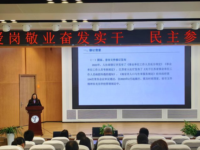 会议聚焦审议《星空网页版登录入口教职工考勤及请假管理办法》,由校党委委员、人事处处长夏玲玲进行详细解读。这一管理办法与每一位教职工的日常工作息息相关,关乎学校教学与管理秩序的稳定。在解读过程中,夏玲玲对各项条款的制定背景、目的及具体执行细则进行了深入阐释,让与会代表们对管理办法有了更清晰、全面的认识。